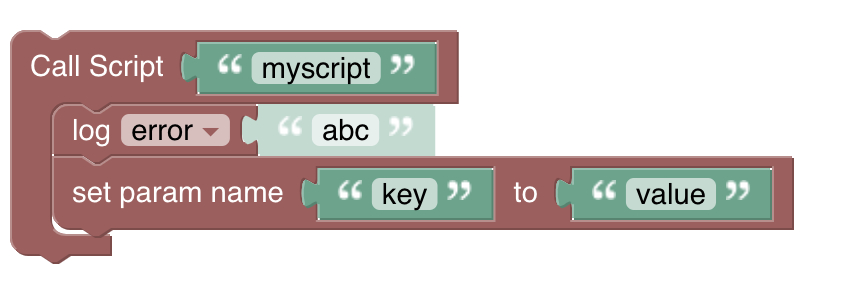 To be honest I’m not too sure about the statements inside the call script blocks to set the parameters, because 1) you can add arbitrary statements inside this surrounding structure which makes little sense (as you mentioned) and 2) you can use the “set param name” blocks outside the call script blocks which makes little sense as well.