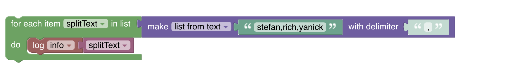 String.splt doesnât seem to be implemented as a block under Text. That would return a value that could be saved to a variable that could be processed by all the List operators. Thatâs a pretty useful way to write more generic rules and doing some very simple text parsing and processing.