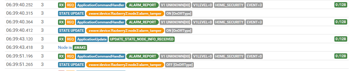 i use the latest stable Openhab2 on a PI3+. Last month i implemented my first zwave thing. This was a Fibaro Flood Detector. It works fine since yesterday. Yesterday i implemented the Fibaro Door Window Sensor 2. And from this time I do not get any data either from Flood Sensor nor from Door Window Sensor 2. I do not know what’s wrong here.