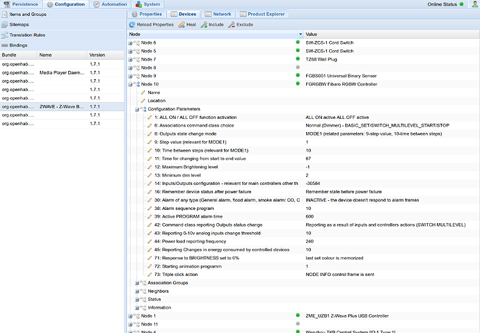 I use OpenHAB 1.7.1, with a ZME_UZB1 Controller (on a Pi2). I tried a few things for the inputs, but no luck: