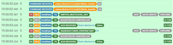The system should normally process the manufacturer proprietary command responses, but this log shows it’s not working. I thought you said earlier that you were able to send commands from OH to set the position, or am I wrong and in fact it is not working? If it sends, then it should also receive as the command class should be added, but please let me know if sending is working so I can have a look.