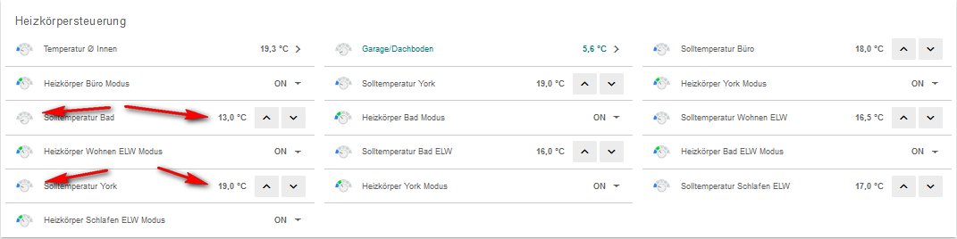 Group item=gRtIstA label="Garage/Dachboden" valuecolor=[>=30="fuchsia",>=25="red",>=18="orange",>=8="green",>=4="teal",>=1="blue",<1="silver"]