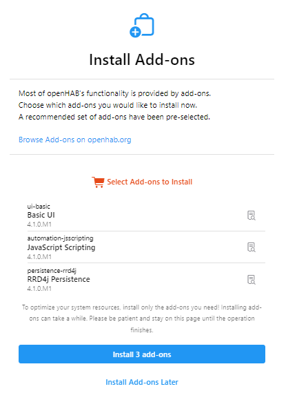 It would also be good if we changed the description. By the time where a new user installs openHAB he might not yet be familiar with our terminology. I would never think of an interface if I hear the term „Add-on“. Yes, I know, add-on includes scripting languages, transformations, persistency services, etc, etc. but at this stage, we want the user primarily to install an interface, right?