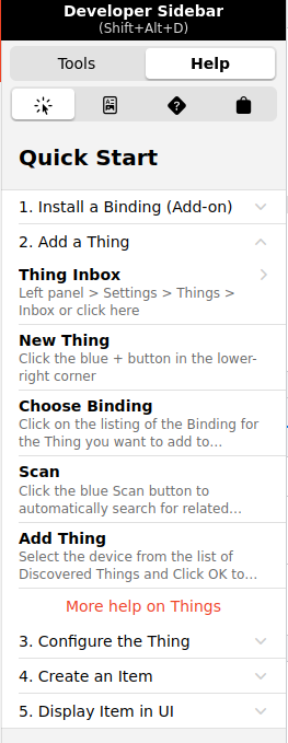 More help on Things (button that links to things section of Getting Started)