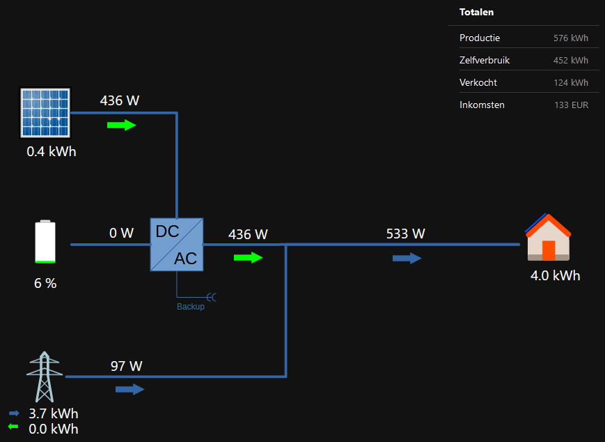 - The arrows are oh-icon components that get a different direction depending on the charge direction or grid direction. The choice is made by referring to the icon with a calculated number behind: icon: = “oh:zppijlbg” + Math.round(items.zpGridStatus.state*1). I did’t find a shorter way to add the icon number.