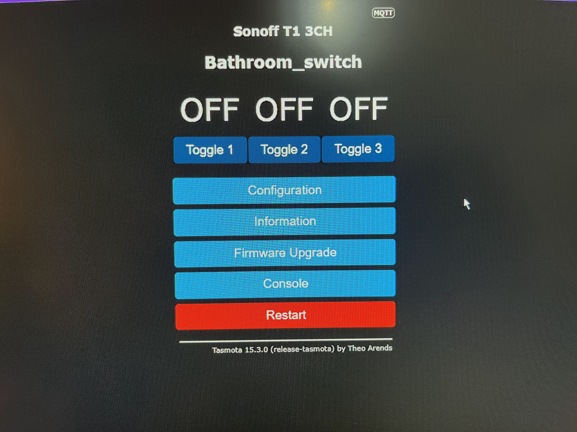 What else… Configuration, the template is still the sonoff T1 1/2/3 gang, and it works great.