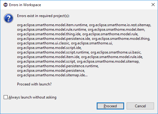 I would like to build my first binding. I installed Eclipse using this OH manual. Followed every step. When the workspace build has finished, I notice two things: