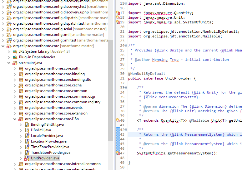 @wborn Not yet decided on when to do the next ESH stable as it might cause some disruptions (UoM is a major refactoring). @bastiaan_van_h You should not need javax.measure, if you do not have any ESH projects in your workspace. Assuming you want to do binding development, there is actually no need to have them there, so you can simply close or remove them and all should be fine.