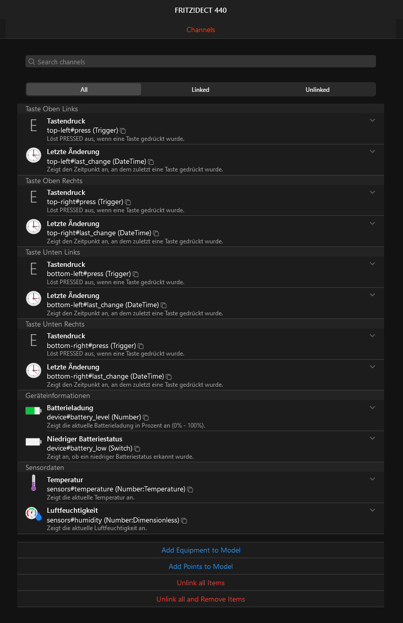 Unless I have made a mistake up to this point, it is apparently not possible to control things with the remote control via openHAB itself that cannot be controlled via the FritzBox.