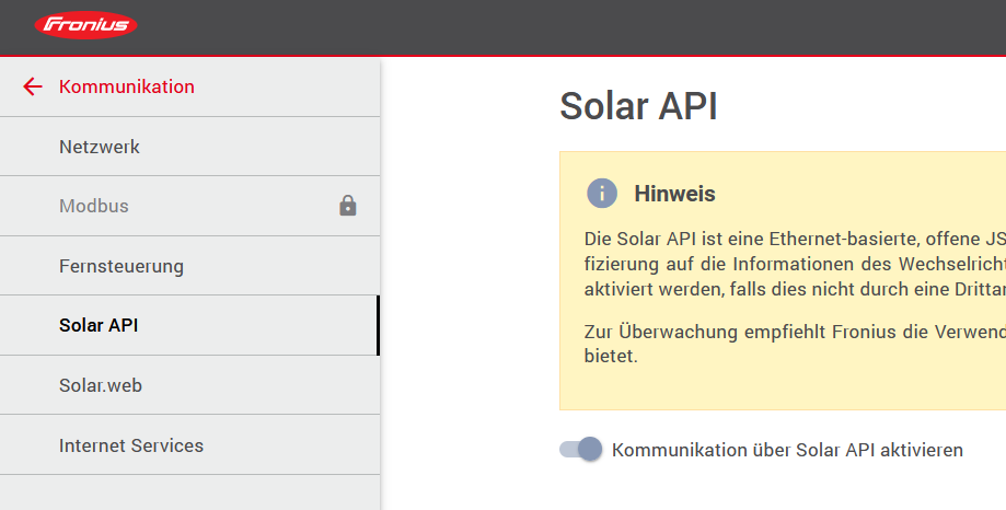 Hi all, today i setup openhab on Rasperry pi at my friends place. He is using a Fronius Symo Gen24 inverter for his solar system. Entering the local IP in the browser its also possible to read all the relevant values (Solar power, battery SOP, house consumption, etc) via the front end.