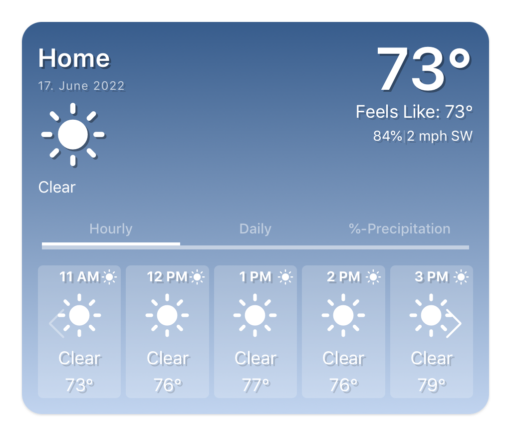 Once you’ve set a forecast thing up, you can link an item to the enriched forecast data and use this widget to display it in your OpenHAB UI: