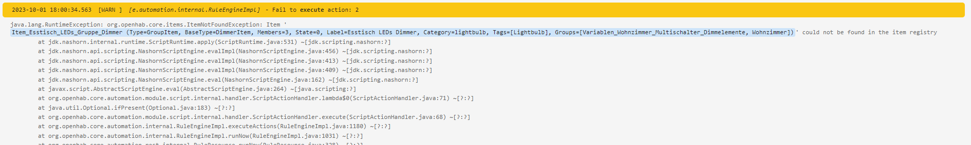 And this causes the following error, saying that the requested element is not found in the item registry (never heard about that):