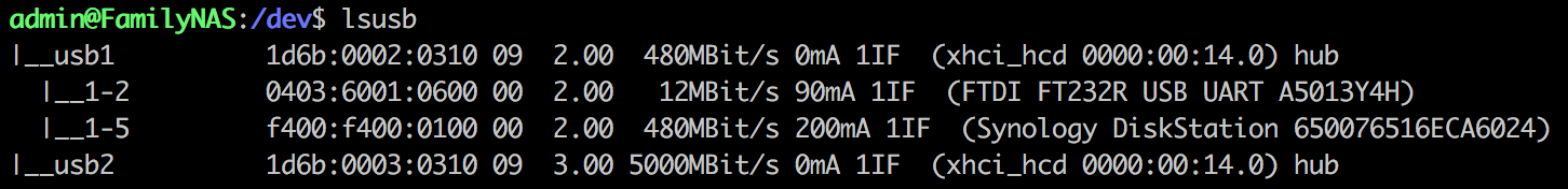 Now when you insert the Plugwise Stick into your NAS you can check with the dmesg command what path is assigned to it. I just tried this with my Stick on a 415+ NAS with DSM 6.1 and this was the output of dmesg: