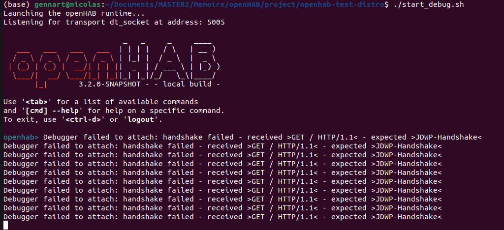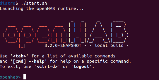 I now have the openhab-test-distro directory that I can launch directly by running the “./start.sh” script inside the directory as you can see in the image put here: