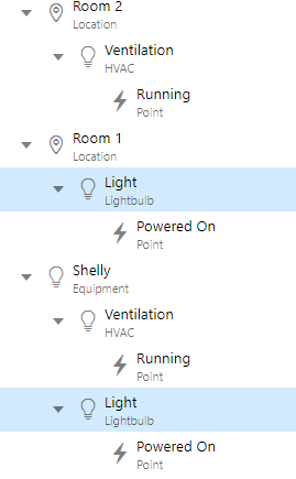 Go back to the Model by choosing Model in the sidebar and verify that the Equipment added to the model from the thing page is effectively there as well as its Points.