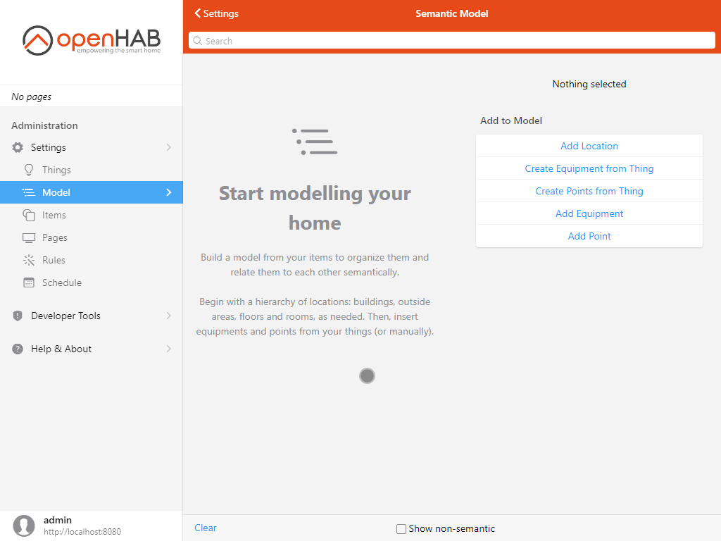 There are many ways to organize your items, one of which is to make use of the semantic model (descriptions for location, type of equipment and more). openHAB 3 makes extensive use of the semantic model to automatically create Pages (see next section) and to provide natural language interaction. Therefore we recommend creating the semantic model right from the start and sticking to it. This will make your life easier in the long run. Taking the time to understand and choose a logical structure for your home will save you from needing to re-do the work a second time in the future.