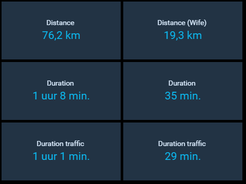 If you wan’t, you can get google Maps travel times ext. in a Item and display it in Dummy widgets.