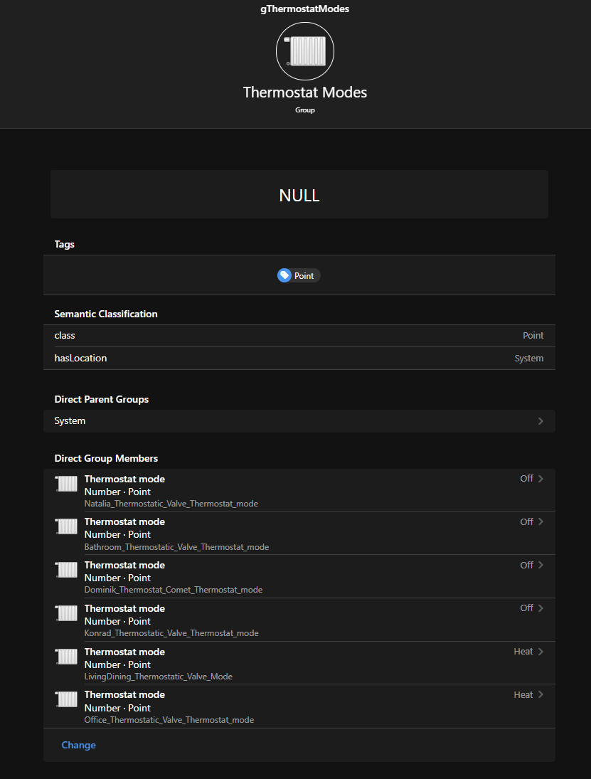 Maybe I make it too complicated but I made a group of all thermostat modes.Every single mode.state is a Number. So my Group has a memberBaseTypte also as a Number. i was thinking this shall work this way. Aggregation is not required because I want to trigger all at once regardless of the mode