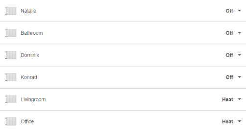 BasicUI shall enter the group of mode of different radiators and display individual status and selection for each of them. Exactly like in the picture below