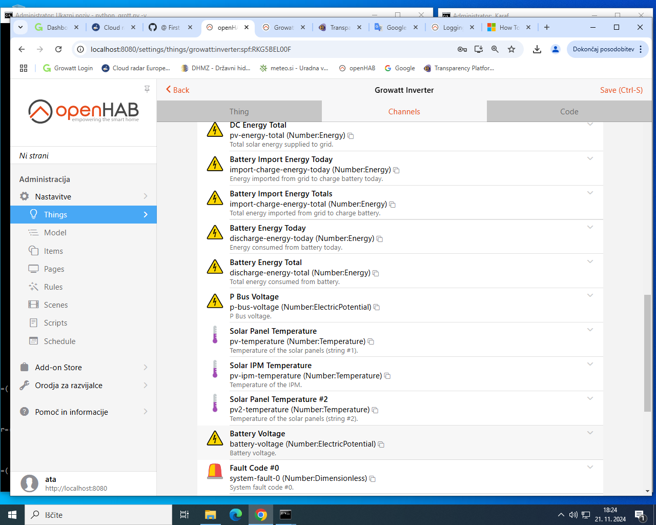 That was an easy one! The current binding is looking for a property with the name batterySOC whereas your inverter is producing one with the name batterySoc. (This is a little bit typical of Growatt Chinese engineers who don’t understand nuances of the Roman alphabet). I will create a new version that supports both capitalizations.