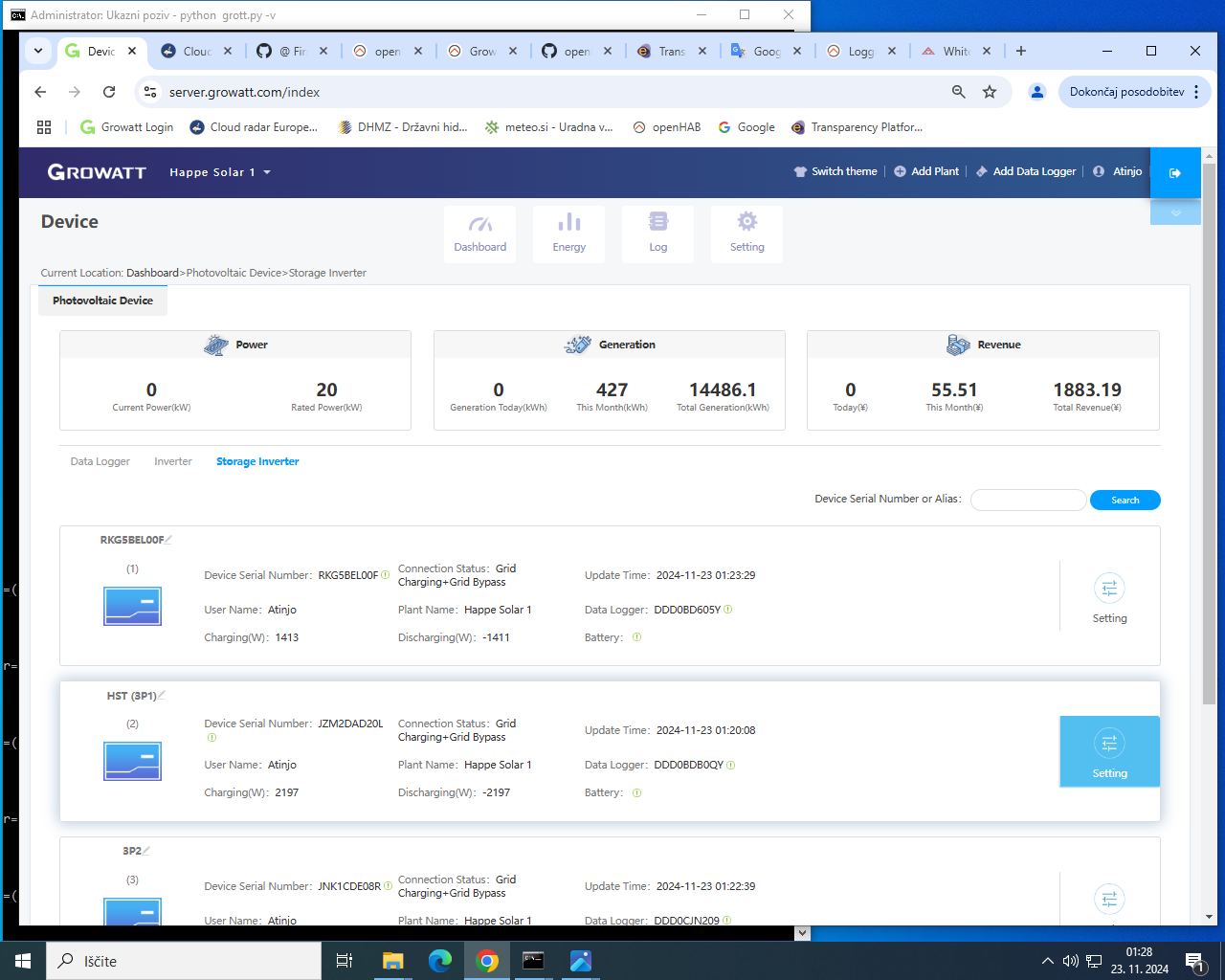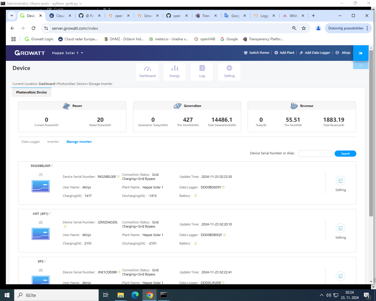 I will do the same later in the day when the devices are disconnected from the grid and the solar power plant is operating.