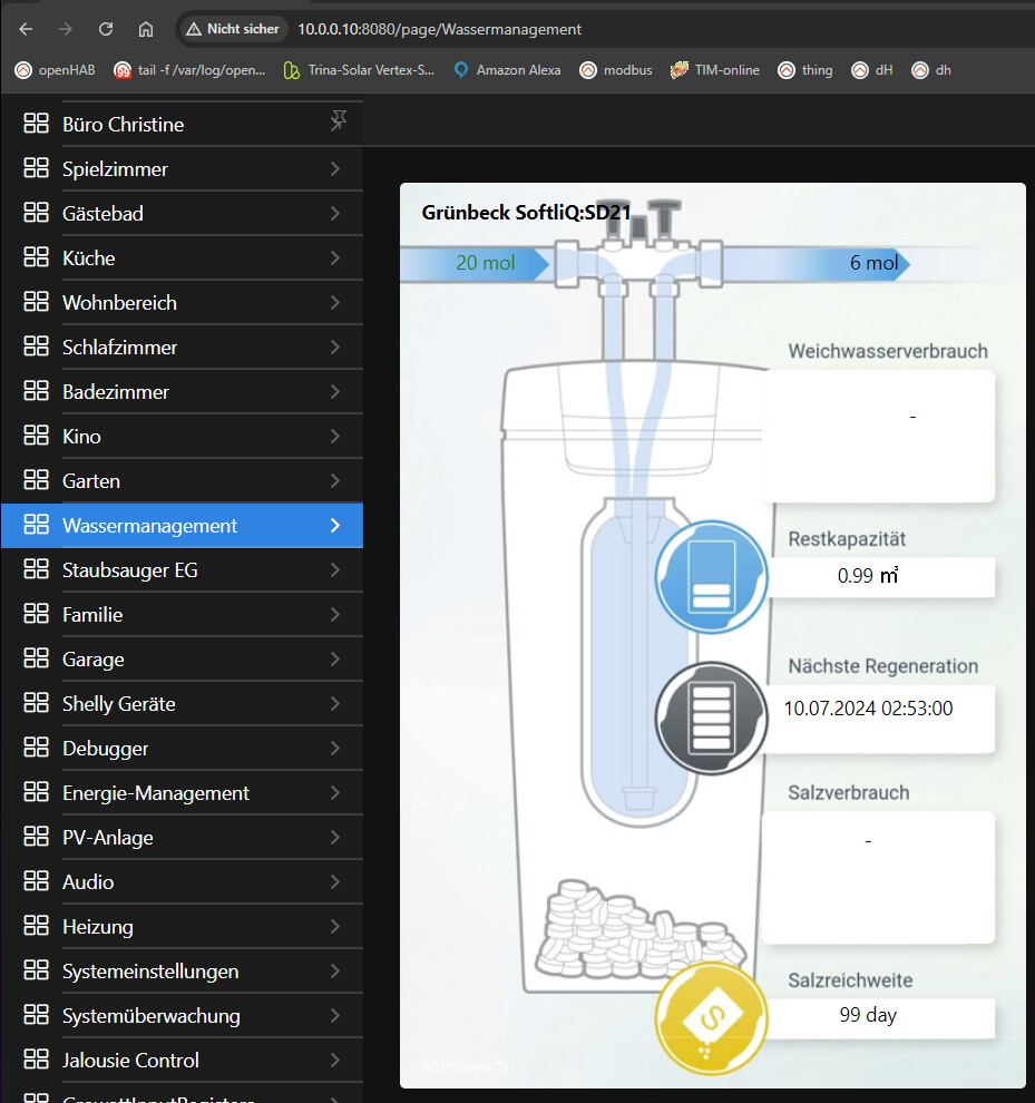 I just successfully integrated my water softener into openHab. Now I’m trying to create a widget to basically reproduce the look and feel of the smartphone app in openHab.