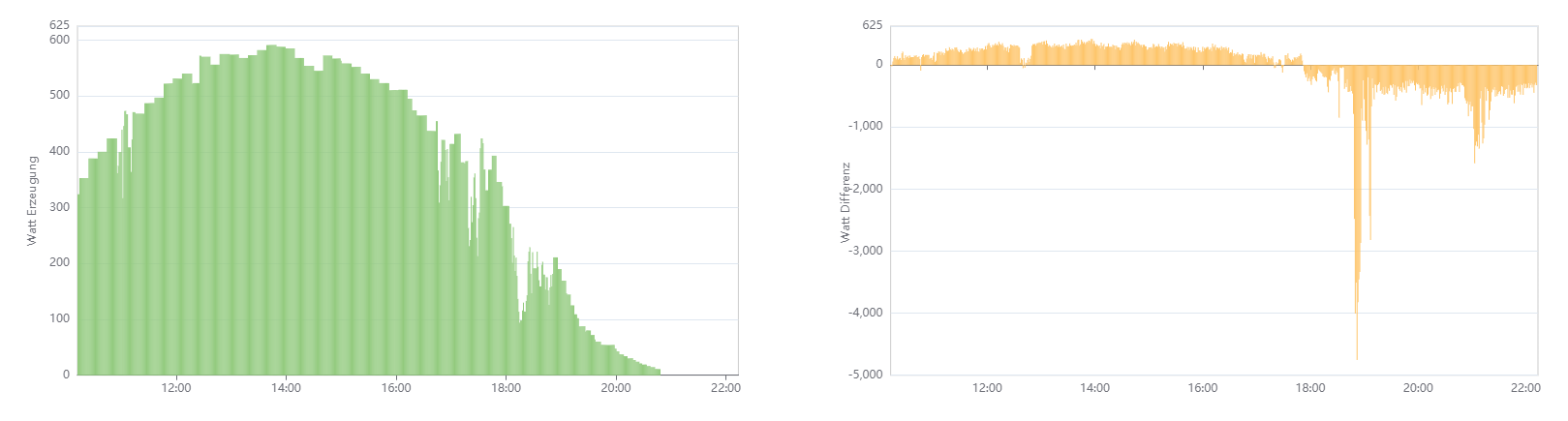 You can cleary see that the needed energy in yellow drops below zero when the sun sets.