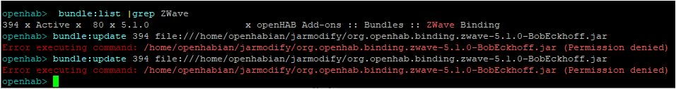 Linux permissions are not my strong suit. I presume that the owner of the jar modify file is openhabian, but openhab itself runs under user openhab.