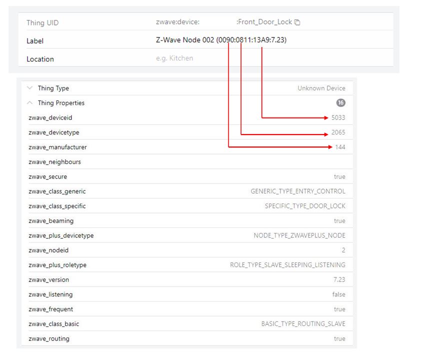 One thing to try to get these numbers (since I do not see them in your screenshot). On OH5 with the 10 Pro, put the ZW binding in Debug mode (UI setting page on the right), then put the controller in exclude mode from it’s UI page and press the EXCLUDE sequence from the lock manual. If the log shows that was a success, then go to inbox, zwave, scan while pressing the INCLUDE sequence from the manual. There should be the needed numbers in the debug log