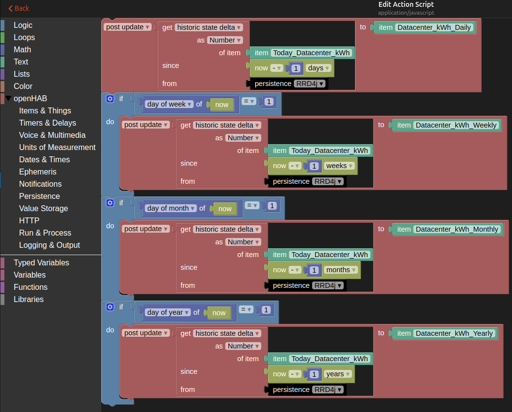 This rule runs every midnight and updates items for daily, weekly, monthly and yearly energy consumption.