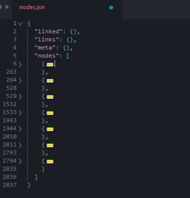 Open the nodes.jsn file. It may be helpful to use something to ‘prettify’ and format the JSON, so that it is easier to read. If your text editor does not do this, there are online sites available that do this.