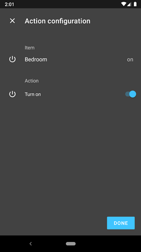 Integration allows you to add an task action to assign certain state to an item inside HomeHabit. Currently only switch-like devices are supported, it will be extended to more types later.