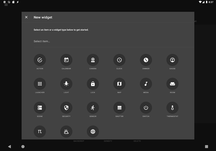 By selecting item first, the app would be able to suggest all widgets that can be bound to that item and pre-populate some widget properties. That works great with simple devices like a switch, which will even pre-populate widget label from a selected device name. Some of more complex widgets like weather or room widgets don’t have pre-population working fully yet. That will be improved at later time.