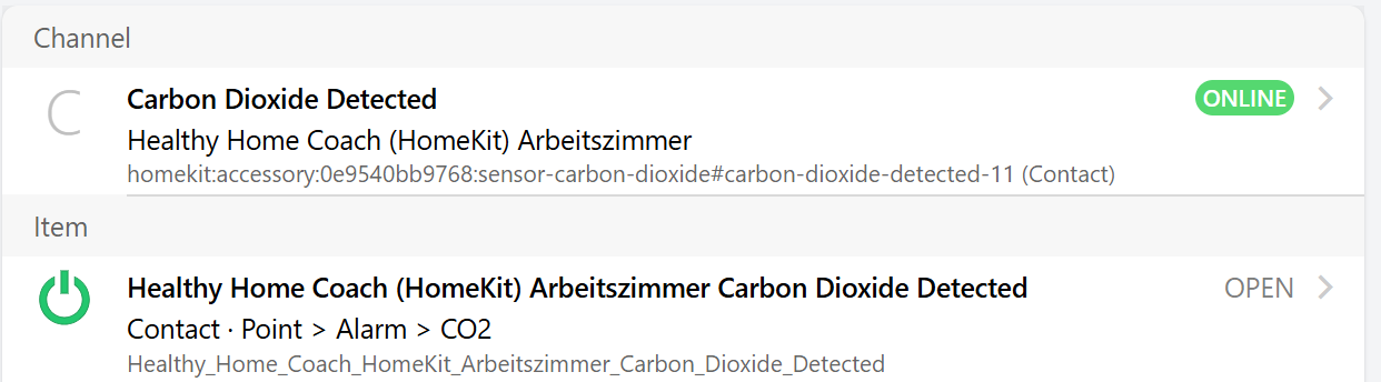 JSON data proves that the sensor threshold value @ 1600ppm works out (what makes sense if its a digital threshold value) but the binding doesnât update in this direction and is still on OPEN equivalent to âiid:11, âvalueâ:1.