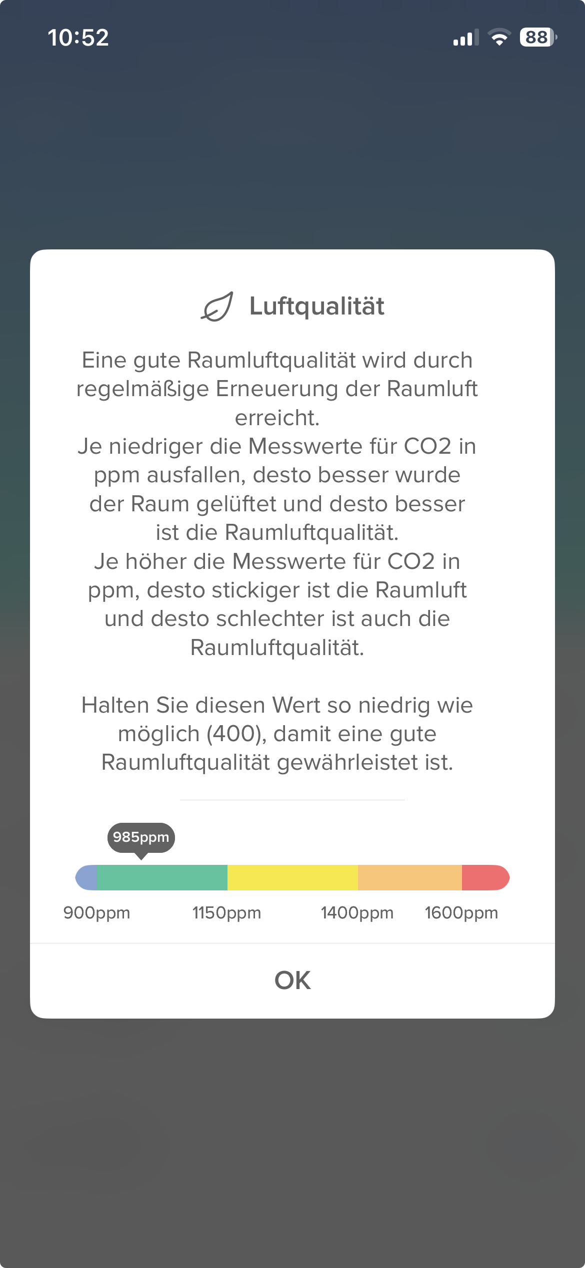 For other OH users who might work with Netatmo binding and HomeKit binding in parallel, there is one information w.r.t. the âHealth Indexâ. Health index scale and CO2 ranges in ppm are different between Netatmo and Apple HomeKit. Thanks to @AndrewFG for providing me the Apple specification.
