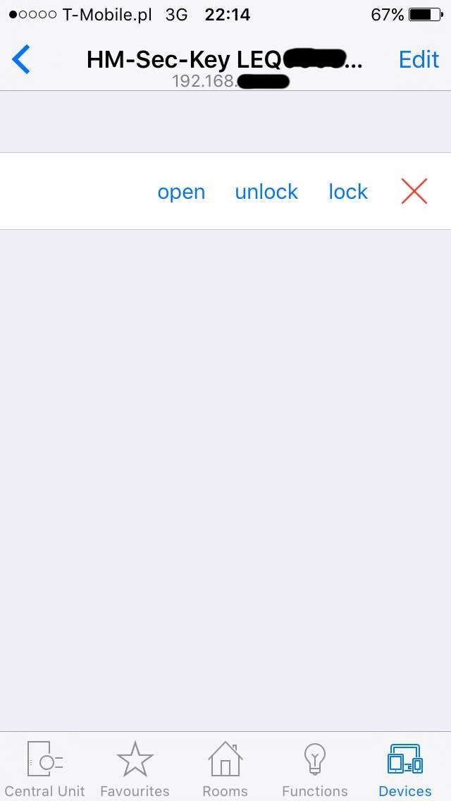 I have successfully connected keymatic to my CCU2 controller and all is working when i am using web browser or ios app to control CCU2. I can lock, unlock and even open the door