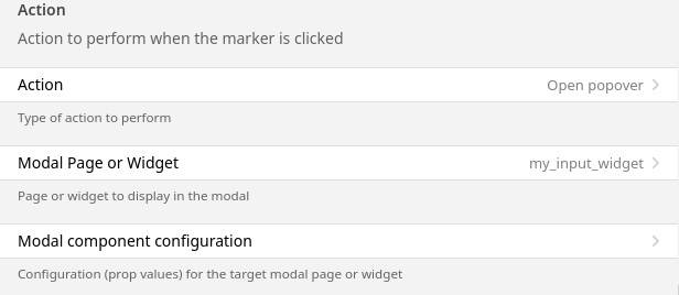 Once you have saved that custom widget, then you can configure the action in the marker wizard: