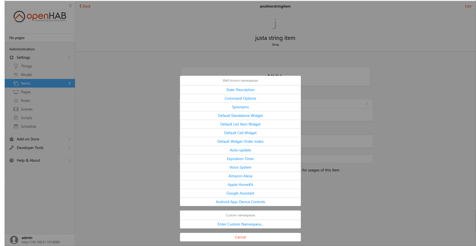 It is a simple question but I could not find a tutorial how to create an own “enum” item. I would like to have an item with “day” “night” “outside” “vacation” etc…
