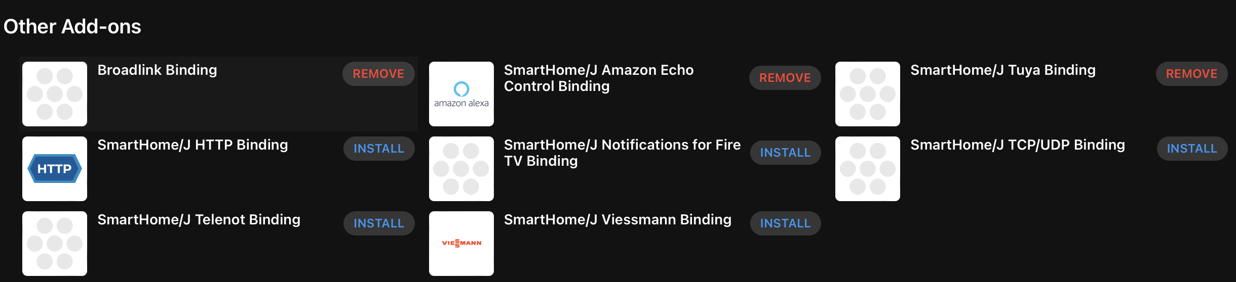 <description>This is the binding for Broadlink devices. It includes support for A1 multi-sensor, MP1/MP2 WiFi Smart Power Strip, SP1/2/3 WiFi smart socket, and RM2/3/4 IR transmitter</description>