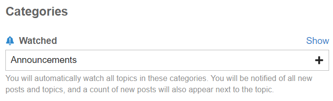 Under “Categories: Watched”, add Announcements.