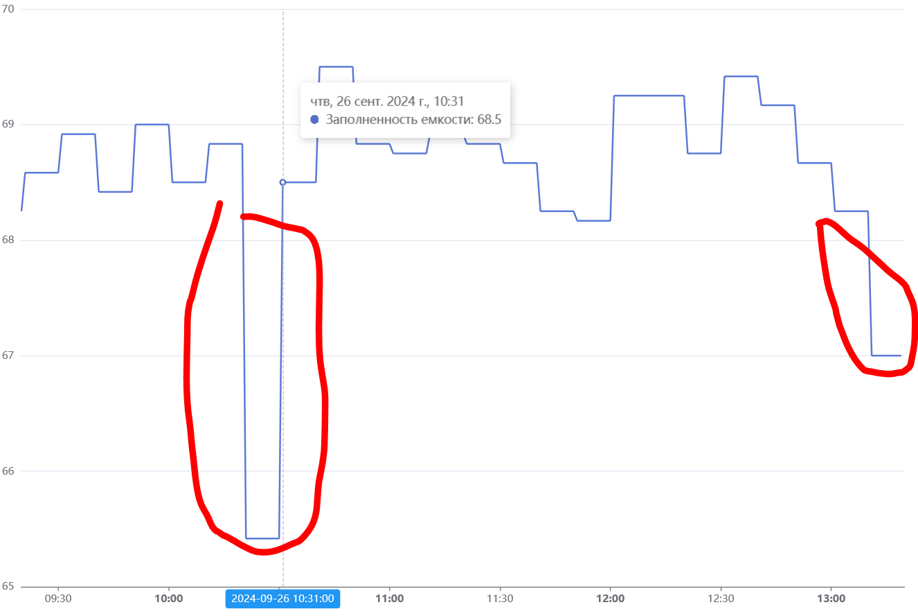 Iām getting data from the ToF sensor about the sewage tank fullness. Every 10 minutes Tasmota wakes up, sends data touch MQTT and falls asleep again. Sometimes the sensor sends erroneous data. I have marked them on the graph. The best way to filter out such data is a median filter. To do this I need to have a cache of the last N values