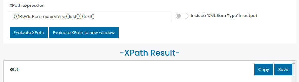 As you’ve already seen from Wolfgang_S’s answer, //BsWfs:ParameterValue is the xpath that gets you all of the results. In xpath you can also directly filter using last() and then extract only the text from the selected element. Probably something like this should work: