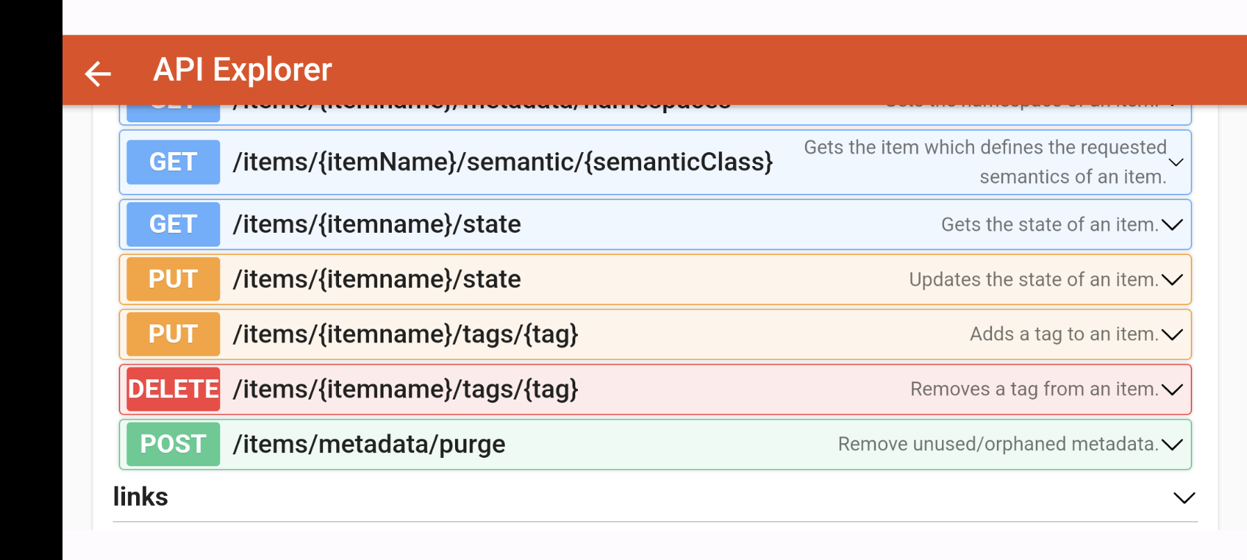 {"link":"http://192.168.178.5:8080/rest/items/itemname","state":"5.63 °C","stateDescription":{"pattern":"%.1f %unit%","readOnly":true,"options":[]},"editable":false,"type":"Number:Temperature","name":"itemname","label":"Aussentemperatur","tags":[],"groupNames":["gZbWeather","gZbWeatherTemp","gZbWeatherTempOut"]}