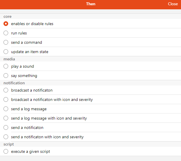 Hello all, I’m really interesting with realizing simple rule only with UI (and thus without my buggy scripts) but I really don’t find how to send mail from the action part of the rule editor.