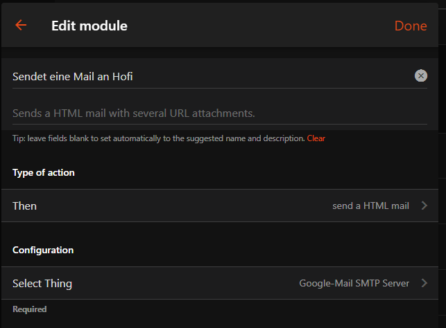 Validation of rule 0ca79312a0 has failed! Action Type "mail.sendHtmlMail(“c.ho......er@gmail.com”, “Es klingelt an der Haustür”, “Jemand steht vor der Hausür”, "http://10.0.0.51/jpg/image.jpg")" does not exist!