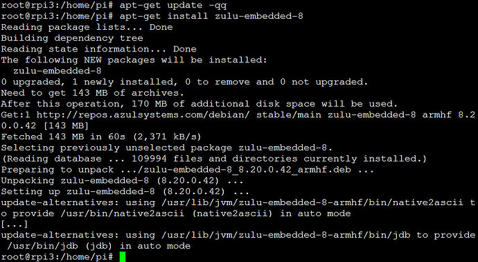 By the way: I don’t know if we should recommend to remove any existing Java deployment (after installing Zulu) on the rPi3