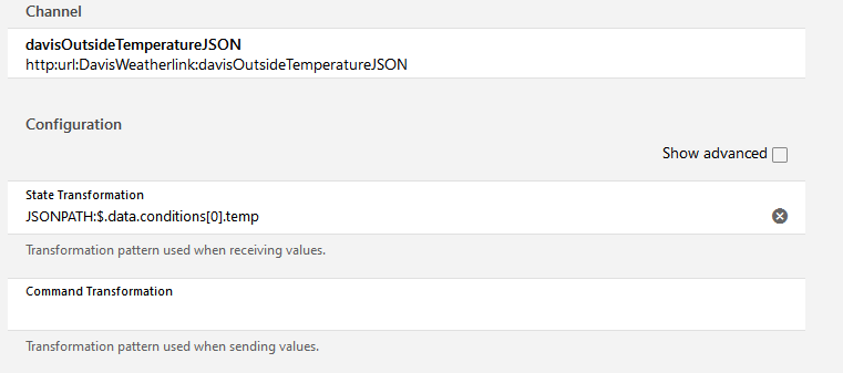 Number davisOutsideTemperatureJSON { http=“<[davisLiveLinkCache:30000:JSONPATH($.data.conditions[0].temp)]” }