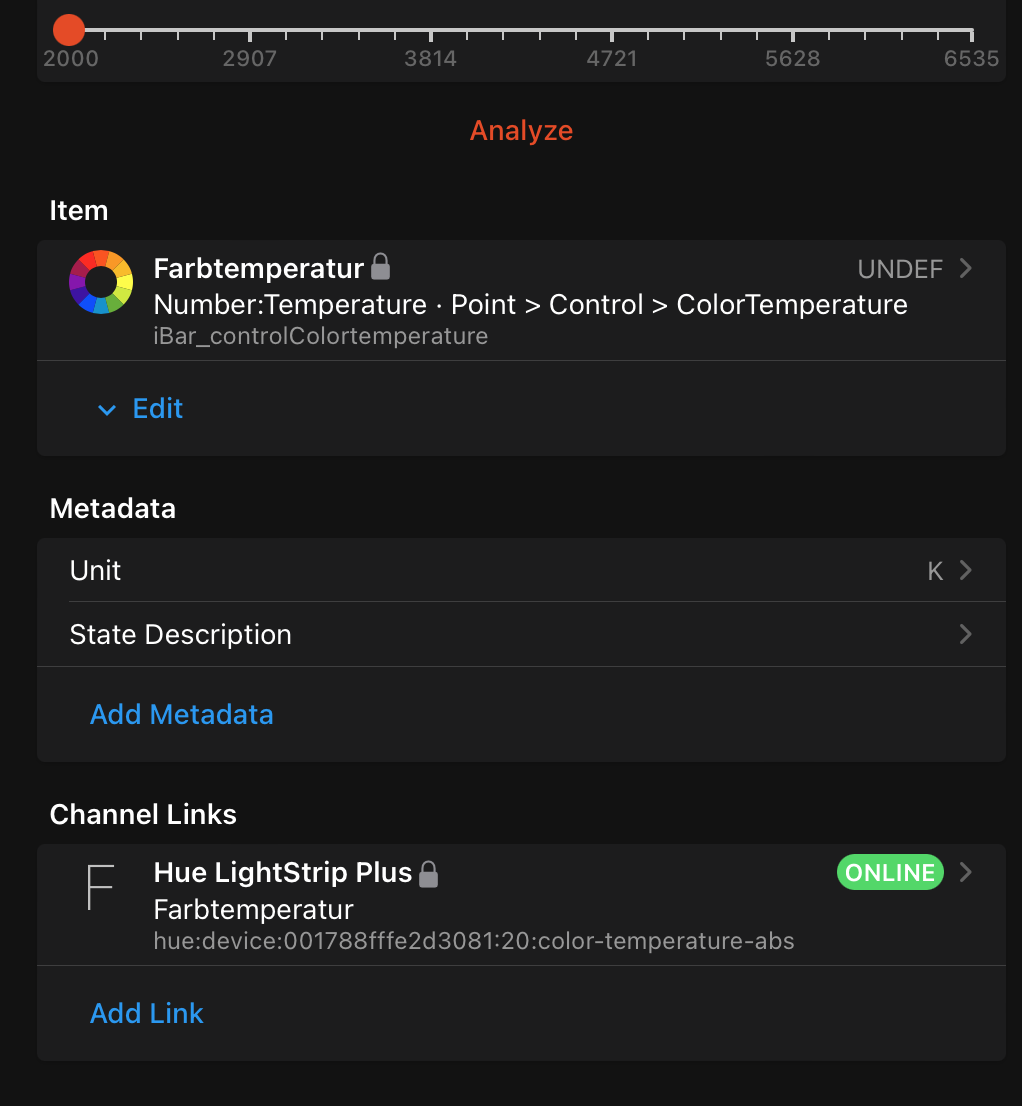 Once I switch the light off and on via the color ruler again, the color temperature is again in UNDEF.