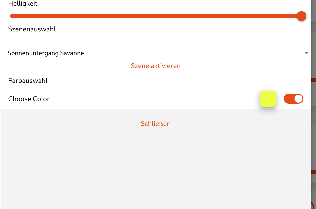 've implemented a custom Cell_hueLight_Card_1 widget that includes a variety of controls for managing lighting settings, including switch, brightness, scene selection, and a color picker. Despite setting up the oh-colorpicker-item to target the ColorGroupItem, the hue color picker does not seem to respond, and I am unable to select or change colors.