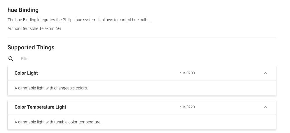 At first I tried the Tradfri binding but it didn’t work at all, then I bought a Hue bridge and it has so much more functionality. It has a RESTS API, the App is much better and so on…